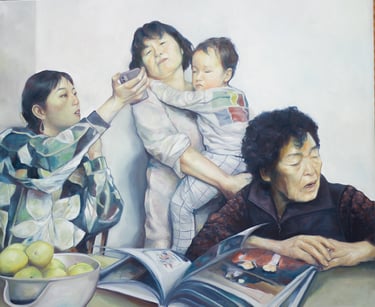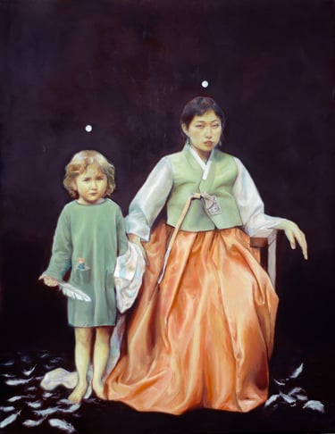 Based on my own familial experience as the daughter of a Korean adoptee, Born in Translation is an exploration of womanhood, memory, and cultural formation across generations and continents. The title reflects the layered, sometimes fragmented way in which identity and culture have taken shape in my family, and how our sense of self has been mediated through language, generations, adoption, and distance.